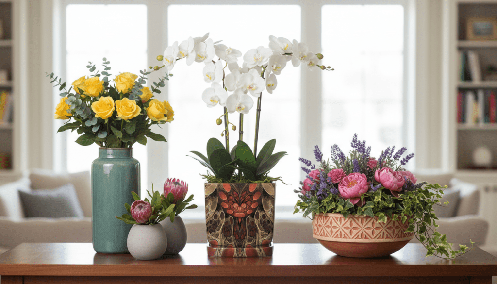 Statement vases are designed to become the focal point of a room. These bold designs often feature unique shapes, textured finishes, or striking color combinations.